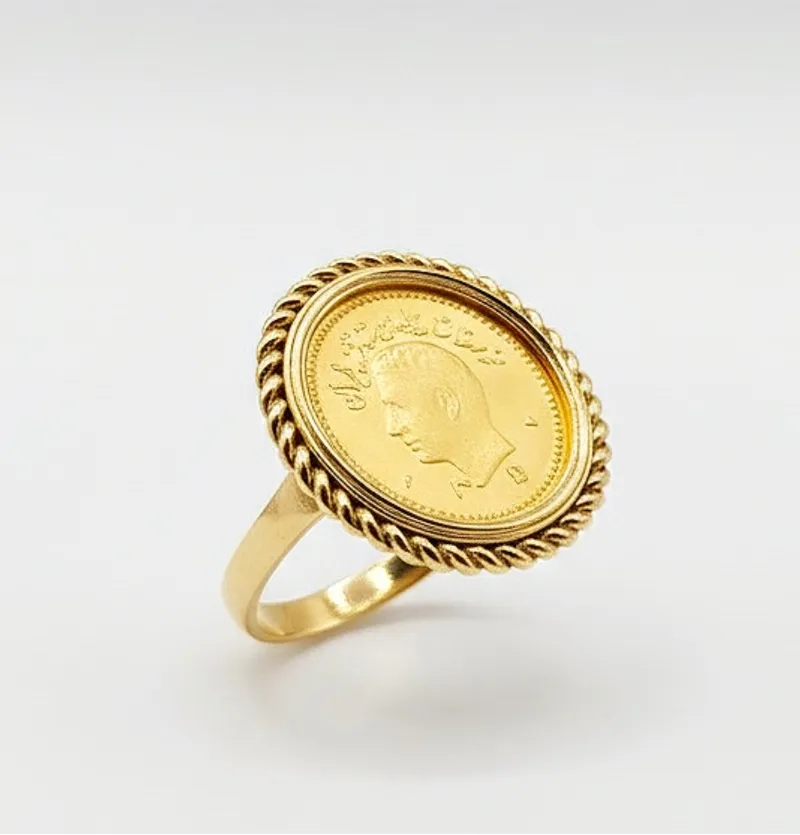 سکه تمام یادبود عیار 900 که برای این سکه قاب انگشتر ساخته شده